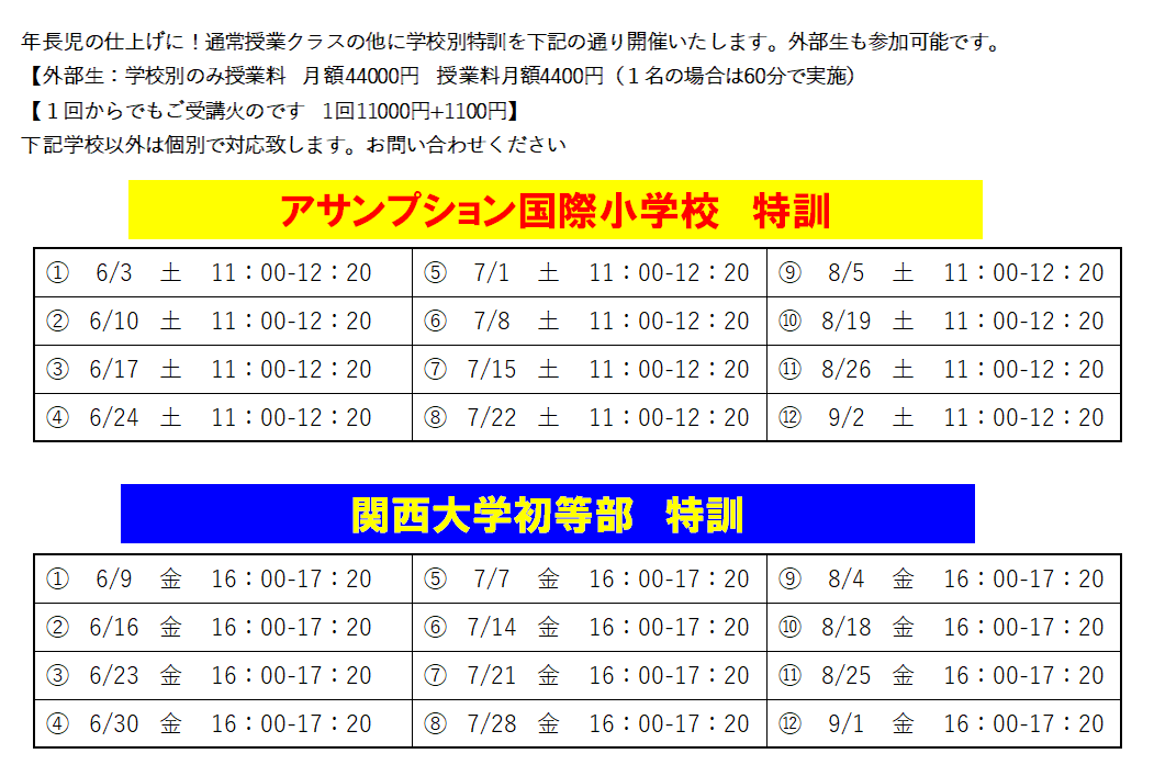 詳しくは教室までお問い合わせください。