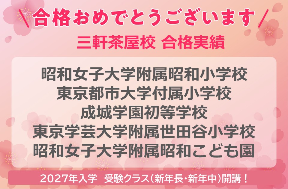 | 午後 | - | 小学校受験 | 小学校受験 | - | (国立)学世田 | 小学校受験・(国立)学世田 |