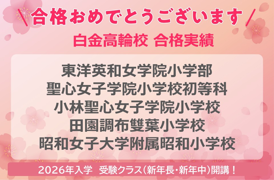 平日の小学校受験コースにつきましてはお問い合わせ下さい。