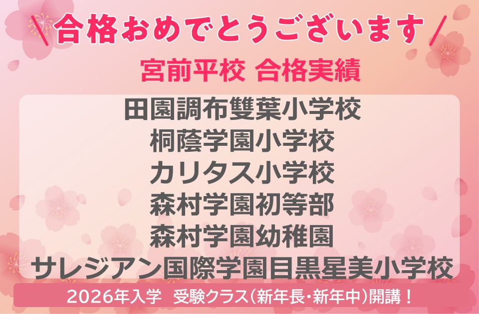 | 午前 | - | 幼稚園受験 | 幼稚園受験 | 幼稚園受験 | 幼稚園受験 | 幼稚園受験 |