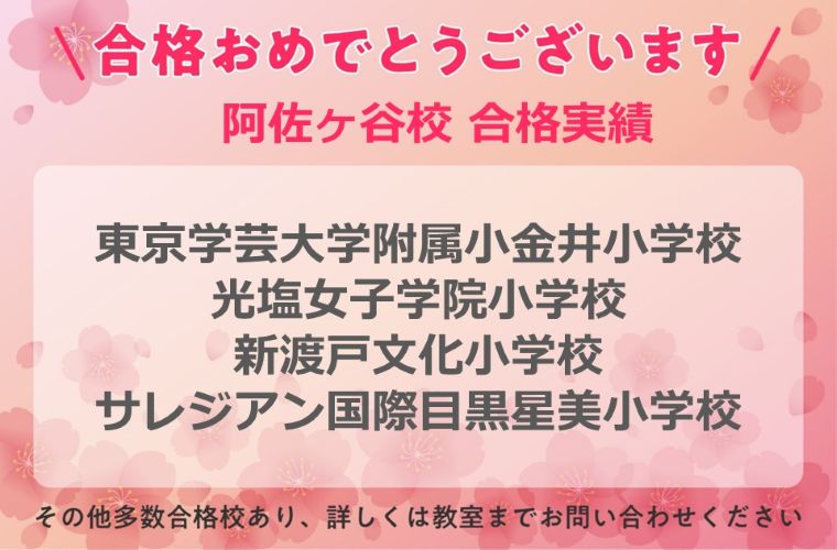 | 午前 | - | 幼稚園受験 | 幼稚園受験 | 幼稚園受験 | 幼稚園受験 | 小学校受験 幼稚園受験 |