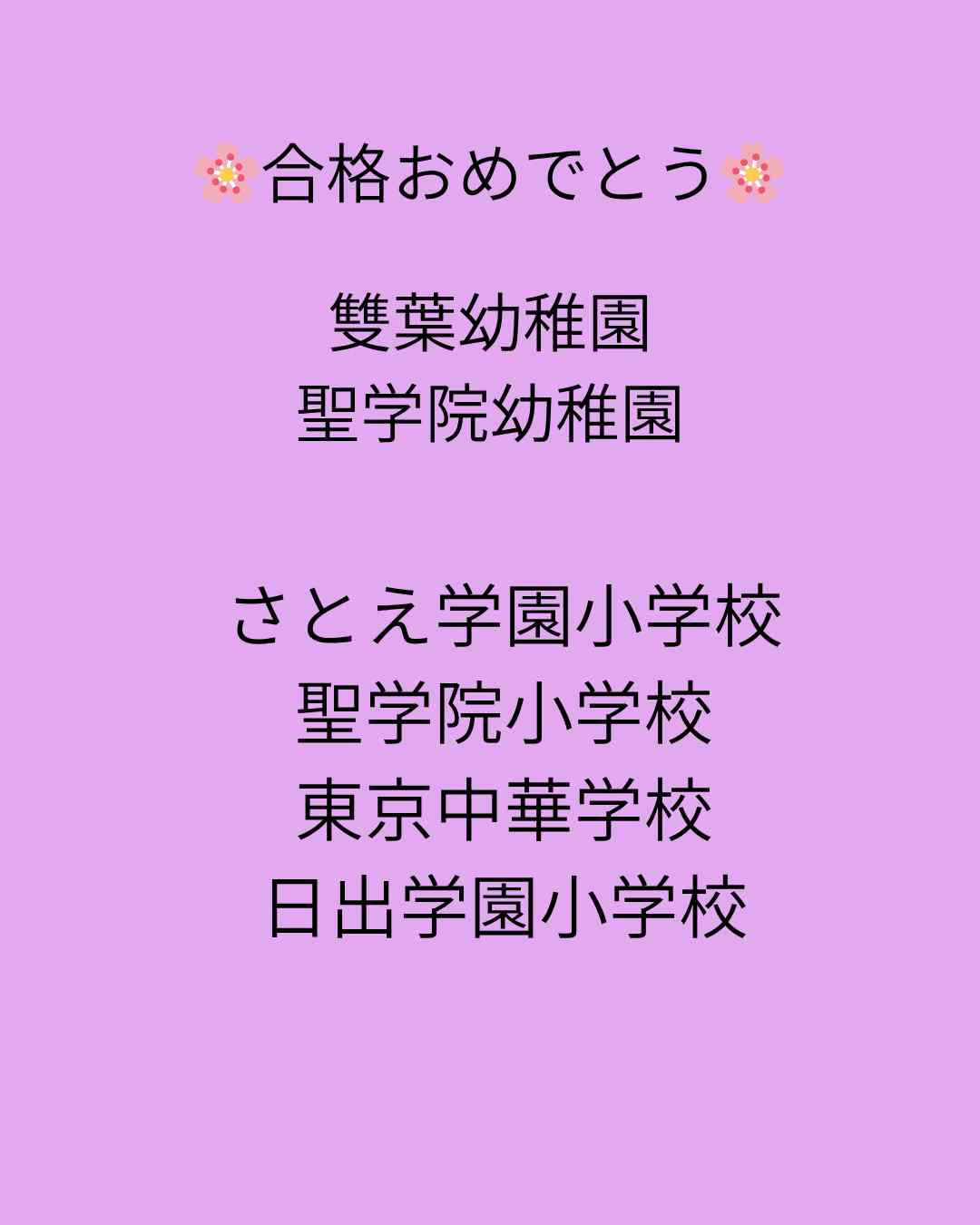 | 午後 | ― | 小学校受験 | 小学校受験 | 小学校受験 | 小学校受験 | 小学校受験 |