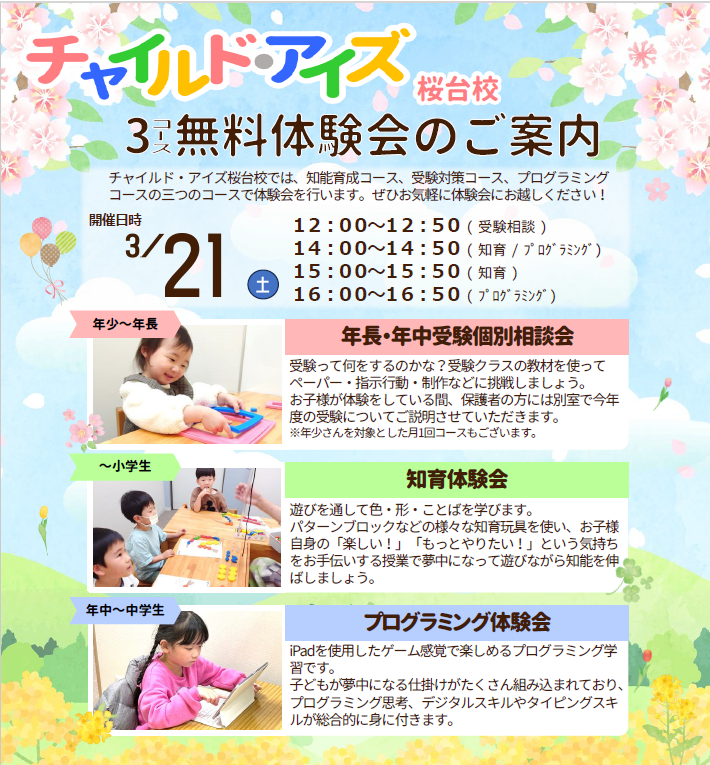 お問い合わせはチャイルド・アイズ桜台校(03-6914-6950)まで