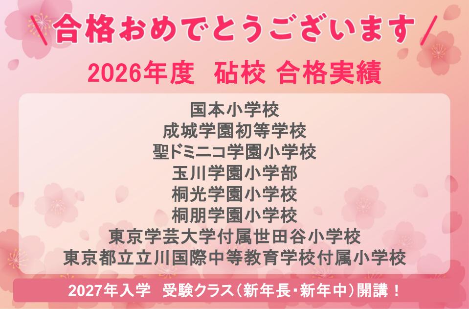 | 午前 | - | 幼稚園受験 | 幼稚園受験 | 幼稚園受験 | ー | 小学校受験年長 |